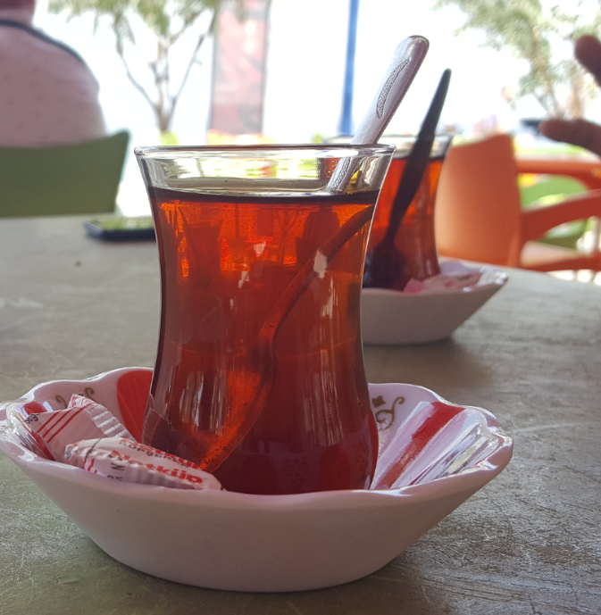터키가면 어느 카페, 음식점을 가나 터키사람들이 이 챠이를 먹고 있는 모습을 볼 수있다. 우리나라 보리차 처럼 터키 원어민들은 마신다. 이게 뭐냐하면 우리나라에서 홍차랑 맛이 비슷하다. 아니 이건 홍차의 종류중에 하나라고 하는게 맞을것 같다. 홍차가 영어로 Black Tea 인데, 이건 진짜 홍차처럼 약간 붉은 빛이 나는 음료이다. 정말 어디를 가던 마실수 있고 가격도 엄청 싸다. 한잔에 1.5리라~2리라 정도 한다. 근데 희안한게 식당가서 저거 한잔만 시켜서 자리를 차지하고 있어도 뭐라고 하는 사람이 하나도 없다. 우리나라 같으면 눈치주고 난리났지.